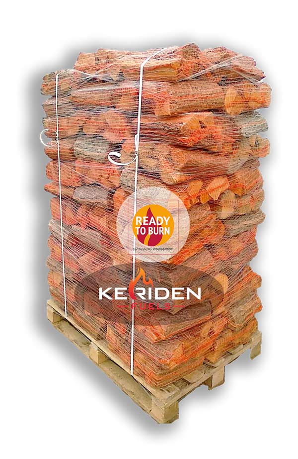 Our full pallet of kiln-dried firewood contains 72 x 40-litre net bags (10kg) of premium hardwood – choose from birch, oak, or ash, each Wood Sure certified for low moisture content and clean, efficient burning.